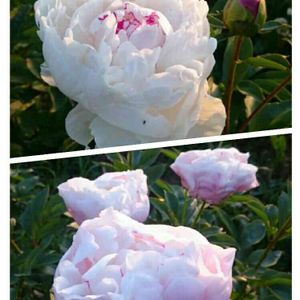 🍀おはようございます🍀 今年も芍薬氷点の横で 芍薬 滝の粧(たきのよそおい)も 咲き始めました♬ ほんのり〜淡いピンク🩷 ④久々にアヤメが咲きました🎶 ⑤地植えのゴールドコインの蕾💛