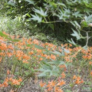 「今日のお花」 *キツネノカミソリ* 周辺のお寺裏山のキツネノカミソリが、山一面こんなに群れて咲いているのを、今まで知らなかった💦 まさに圧巻でした✨ 🏷オレンジ色の花も好き 🏷煌めく金曜日の花 🏷きんきら金曜日
