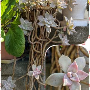 こんにちは☀ 朧月、秀麗 垂れ下がるように伸びた姿に開花とても見栄えがします 今が一番綺麗かな 多肉お花シリーズ