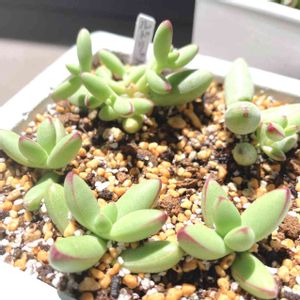 びーばーさんからいただいた クラッスラ属 エルネスティ お仲間と養生鉢にいたのですが モリモリになってきたので お一人様に😊 奥は一緒に届いたルドリップ。 パツパツに元気です💕 みんな元気に活動を始めていま〜す🌱