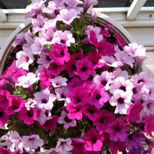 今朝のすぐ楽サフィニア✨ また、花数が増えて、鉢いっぱいも近いかも。 交互に、色がなるようにしたのが、よく分かってきました💮