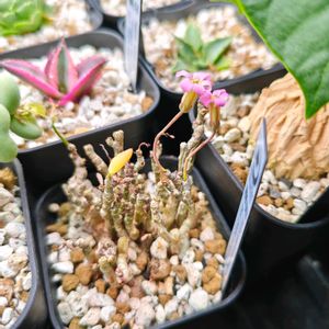 先ほどの投稿、間違えて何も書かずに投稿 してしまいました。 横浜〜川崎〜横浜と電車で帰宅途中。 空は曇天。今にも降り出しそう。 と、書いてる時に稲光!⚡️ 先ほどの写真は ①ケラリア母1と②母2③1から出来た種が 発芽した子。 今回は ①群卵 お花カワイイ😊 ②ピンキー 葉っぱ1枚展開…したっけ? ③四海波 相変わらずなエイリアンぐあい。 あと1日頑張りましょう!