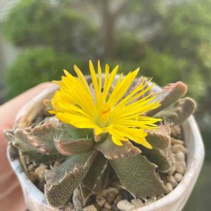 おはようございますˆˆ 快晴☀気持ちの良い朝。 数年ぶりにこの姿見れました💦 もう開いているので既に 咲いてくれておりますねぇˆˆ 3時頃見れるかなぁ(^^;) 1週間位前にリビングに入れたら あっという間に蕾をつけてくれた ガオガオ君のフォーカリア四海波さんˆˆ Faucaria tigrina そろそろ寒さに弱い子達を 避難させないと💦 ライト、温度、風用意が大変ですよねぇ💦 デカ鉢のアガベさん達の1階から 2階への移動が1番キツい(TT)