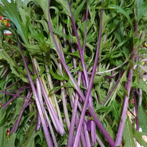 『紅水菜』 だいぶ花芽が出来てきました❗ 今、色々な菜花が咲き始めています👍急いで食べないと😅 浅漬けにして量を減らし毎日食べています👍 今日も1日お疲れ様でした‼️ 🌜💤おやすみなさい🌜💤