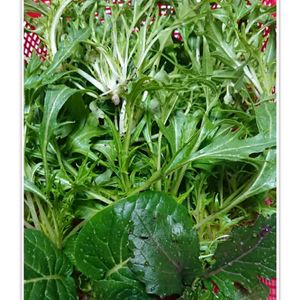 『水菜』 ( -_・)? ん⁉️ なんか違う😅 これは小松菜かな⁉️ 紛れているぞ~~~💦 種を収穫した時に混ざってしまったのか⁉️ このまま静かに見守ります‼️