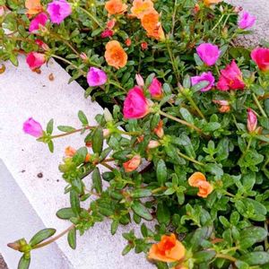おはようございます 咲きそろいました ポーチュラカ 3色😄 もっと他の色も欲しかったなぁ😆 ゴメン🙏 贅沢だったよね💕