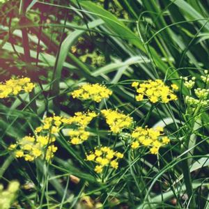 レモングラスの足元で 涼しげに咲くフェンネル 🌿🌿🌿 大きくなりすぎたフェンネルを スパット切ったら低くなって 可愛く咲きました💕\(^o^)/