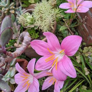 多肉植物を無造作に置いていた 場所で 元気印で咲いています ☀オハヨー‼️