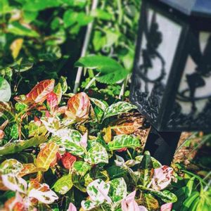 ブリキ缶に葉っぱさんだけの 寄植えを作りました🌿🌿