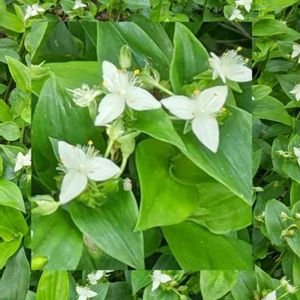 三角形の小さな白い花を 咲かせる🌿トキワツユクサ🌿 一面に咲きました💗 雑草のようですが、この可愛い 花に会いたくて場所は確保です😄