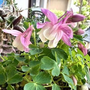 花友さんから頂いた、桃色深山オダマキの花が咲きました🌸😊