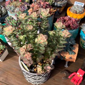 寒いから簡易温室中段に入れてたアエオ達を今日は太陽が出たのでたっぷり日光浴。 最近は暖かいから夜もビニールしないで外管理。太陽の光が足りなかった小人の祭りはヒョロヒョロみどりん。 紅葉する日はくるかな😅