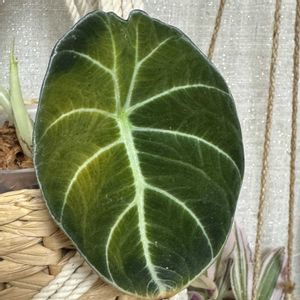アロカシア ブラックベルベット マットな質感と葉脈が美しい。 日に透かすと蛍光色のグリーンが灯ってまた違った顔に。 これは低価格でお馴染みのミディプランツシリーズのやつ。あの生産者さんのこのアソートも結構お値打ち品が混ざってますよね。 店舗によって品揃えが違ったりするので、入荷を確認したらお値打ち品を求めて色んなホームセンターとかを巡ってしまいます。 ※誤って削除してしまったので再投稿。