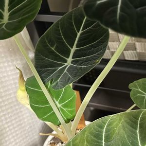 アロカシア ブラックベルベット 新葉が出て来たと思ってたら花芽でした しかも2つ いつも花が咲いた時どうすれば良いのか分からなくてそのままにしてます