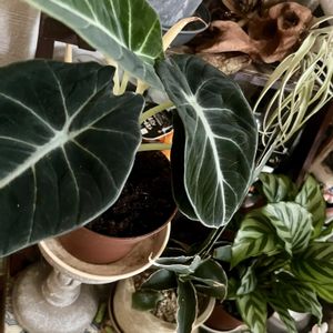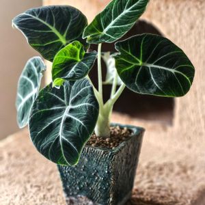 暑いから辞めたかったけ植え替えしてしまったアロカシアジャックリンとブラックベルベット ブラックベルベットの葉もたまらん お手間お掛けしたあーさんありがとう😊幸せ😃