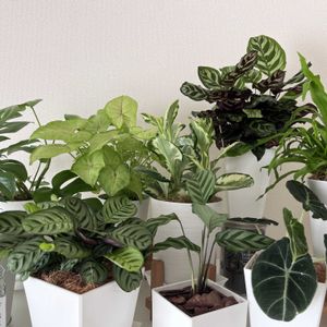 ☆植え替え記録☆ 先日お迎えした植物達&根っこパンパンになってた子たちを植え替えました。 全部ねこチップ。 ドラヤキちゃんは葉っぱが重なるように付いていて、ちんまりしたフォルムがかわいい😍 ピンクプリンセスは根が思いのほか少なくて小さめ鉢にしました。 でも葉っぱ大きく広がっているからバランス悪いかも💦 アロカシアブラックベルベットはだいぶ大きくなりました。 昨年は葉が落ちて越冬したけど、 今年は簡易温室で乗り切れるかな!?