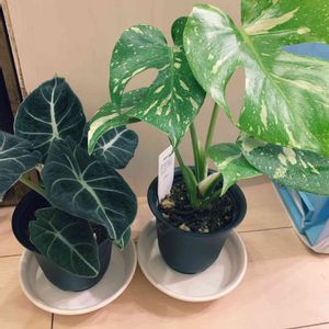 今日届いた、ずっと欲しくてでも置き場所がなくて諦めてた斑入りモンステラ。 ついでにアロカシアも。 また植え替えしないと😊