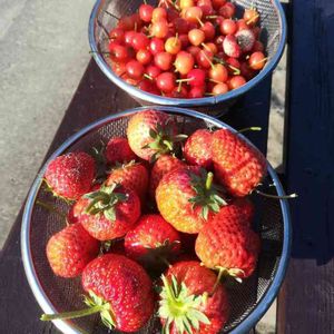 昨日に続いてサクランボがたくさん獲れました。イチゴは10日ぐらい前から毎日食卓を賑わせてくれています。 今日は知り合いにお裾分けです。