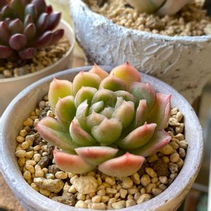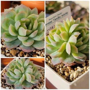 カルテ№289 エケベリア属 すみれ牡丹🌱 カルテ№309 エケベリア属 フンユウバン🌱 カルテ№361 エケベリア属 ツインベリー🌱 カルテ№364 エケベリア属 レモンベリー🌱 いやいや~、昨日の風にはビビりました💦音がものすごくて😱鉢に不釣り合いなほどの頭の大きさしてる「高砂の翁」が夜中にひっくり返ってました(笑) 皆さんちは大丈夫でしたか?うちは、寒波の予報が出たんで今週は水やりをストップしてたし、気温の予報は昨冬の大寒波に比べたら大したことなかったんですけど、風が強すぎて凍るかも!?と心配でしたが、無事に乗り切りました👍 さて、前の2投稿で我が家に居る「大好きなエレガンス系」をご紹介しましたが、なんと!私としたことが「team・ラズベリーアイス」を忘れていたので追加でご紹介を🤭🎶 ↖️エケベリア属 エレガンス 'ラズベリーアイス' 2017年12月にお迎えして5年目に突入。急がずにじっくり「ギュッと」育ててます。ジワジワと子吹きラッシュで楽しみ。これから春に向かってしっかり色付いてくるとめっちゃ可愛くなるはず🤭💕 交配種じゃなくて、エレガンスの赤紫っぽくなるタイプを品種固定したもの(選抜種)です。 ↙️エケベリア属 フンユウバン 2020年1月にお迎えして2年目。我が家ではまだまだ若輩者です。上のラズベリーアイスと2つ前投稿の花月夜の交配種。好き × 好き の交配なんで大好きに決まってますな❣️ゆえに積極的に殖やし中😆なんで、こんな名前付けたんかいな!?👀もうちょっとオサレな名前ならもっと人気が出るはず🤣 ⬇️エケベリア属 ツインベリー 今年の2月にお迎えした子で今回が初の冬越しという、我が家のペーペー組。(おそらく)韓国で交配されたものと思いますけど、韓国苗って交配式を公表してないものが多いですよね💦企業秘密なんですかね(笑)でも、片親はラズベリーアイスだそうです👍 ↘️エケベリア属 レモンベリー 上のツインベリーのオマケでもらった子なので、この子もペーペー。ツインベリーと色味は全然違うけど、この子も片親はラズベリーアイス。こんなふうに悶々とするんで、素性の分からん韓国苗は極力お迎えしないようにしてるんですけど、オマケでもらったんで育ててます😂 ↓「team・ラズベリーアイス」ではないけれど、忘れてたエレガンス系をもう2つ。 ➡️エケベリア属 エレガンス 'ポトシナ クリスタルローズ' 2019年11月のお迎えで3年目の子です。ロゼットが歪になってしまってて、ちょっと残念ですけど、色味が好きです😍 エレガンス 'ポトシナ' の選抜種という位置付けなんでしょうか!?🤔ヨクワカラン ↗️エケベリア属 すみれ牡丹 バイオレットクイーンっていう学名ですが、すみれ牡丹という名札で2019年10月にお迎えして3年目。昨冬の大寒波でやらかして、瀕死の状態から救い上げ、頑張って復活させ中👍父親不明のエレガンス交配です。 「たっちんの○○○」タグをタップでこの子たちの生長記録のみどりのまとめが簡単に見れます😊🎵 。* ❤︎… 今日のひと言 …❤︎*。 寒波のアナウンスが出たら外の子たちの水やりはストップ、仕方なく水やりしたら夜は室内へ☝️