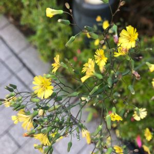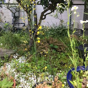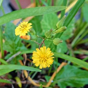 庭の雑草 ⑥ オニタビラコ 今年初めて名前を確認しました🤗 庭のあちこち、あちこちの鉢から 有るわ有るわ~アル(>∀<)‼︎ 庭の住人と認定しました🤭 今日かしばらくは雨 雨が上がれは引っこ抜くけどごめんね🙇🏻🙏💦