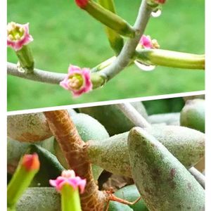 亀の卵から長く伸びた茎に赤い色を付けていましたが🌷が咲きました🌷 他の方の亀の卵のお花と違うな~😁🌷