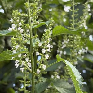🏷️のんびり 🏷️白い水曜日♡ に参加させていただきます のんびりと撮影は9/16日です もう種が出来ている頃でしょうか? ☆間違えている場合は教えてください 葉柄はわかりましたが対生かは良くわかりません イヌトウバナ(犬塔花) シソ科トウバナ属の多年草 本州〜九州に分布 茎は斜上、直立し20〜50cm 葉は対生し葉柄あり(③) 葉身は卵形〜狭卵形、鋸歯あり(③) 花期 8〜10月 花はやや接して数段まばらに輪生し花穂の軸には密に毛が生える 花冠は白色でわずかに淡紫色を帯びる 上唇は浅く2裂し 下唇は3裂する 雄しべは4個のうち下側の2個は少し長いそうですが私の写真では確認できません