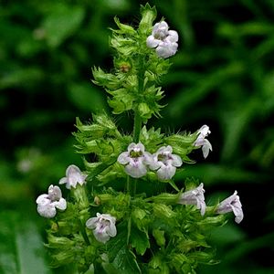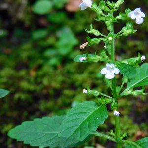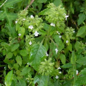 ※シソ科トウバナ属 北海道から九州に分布する 茎は直立し高さ20〜50mm 葉は対生し5〜20mmの葉柄があり卵形から狭卵形、縁には鋸歯があり葉裏には腺点がある(後日確認して来ました) 花期 8〜10月 枝先や上部に短い花穂を付ける やや接して数段まばらに輪生する 萼の上唇は3裂、下唇は2裂 花冠は白色で上唇は浅く2裂、下唇は3裂する 茎、葉の両面、萼に毛が生えている 9月5日撮影