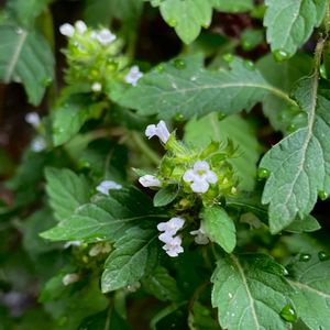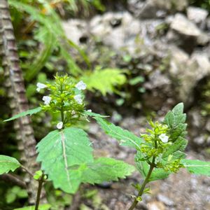 イヌトウバナ(シソ科)神奈川県より 2022.09.16撮影📲在来種 湿っぽく暗い道端のコンクリートの中などに、ひっそりと咲くので、あまり気付かれません… 特徴は、萼のポサポサした長毛ですかね😅 葉っぱのギザギザが明瞭な点も🌿✌🏻 お花が薄い水色に写ってますが、肉眼では白く見えました😳ˎˊ˗