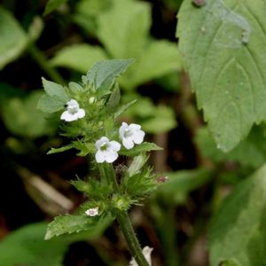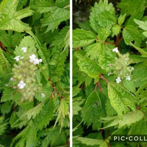似たもの② イヌトウバナ 葉は対生し、卵形〜狭卵形 縁に鋸歯がある 花は淡紅色わおびた白色の唇形花をつける がくに毛が多い 日本各地の山地に生える多年草 だそうです 合っていると思うのですが?