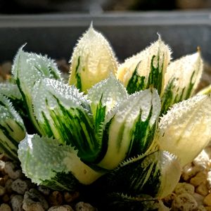 ●ススキノキ科 ツルボラン亜科 ●ハオルチア属 ●白帝城錦 糊斑②😻😻 『毎月8日、9日は白帝城の日』☝️😁 おはようございます‼️🥱🥱🥱🥱 昨日の夜から☔雨が降り、やがて朝方になるにつれ❄️雪に変わりました。😱🥶サムッ 今日は病院で定期検診があり、有休を取ってました。✌️😁 早朝出勤してたら大変だったかも…😅アハハ でも、今ではすっかり❄️雪も☔雨も止んだので良かったです。😆 😂今月は忘れずに、『毎月8日、9日は白帝城の日』を投稿出来ました。😆😄 いつもはつい忘れてしまい、他の方の投稿が白帝城で気が付いて、慌てて9日にアップしたりしてました…🤣😅 2日間あると、余裕があっていいかも…🤔 ん………🤔。 ☝️🤓毎月26日は糊斑の日も2日間にすれば良かったかな…🤔? 変えるの有りかな? 25日、26日か、26日、27日か…🤔 このまま26日だけにするか……😅