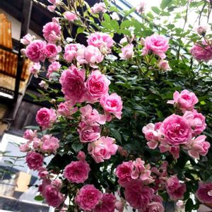 薔薇 メイ💓 長野パパ便りより…… メイも盛りを迎えている様です。メイさん、凄いなぁ〜帰れず……一切の世話を受けず(去年の花後〜カットのみ)で、まさか此処まで咲いてくれてるとは思わなんだ😳‼️パパは何もしないので……1度も薬も撒いていないのに…葉っぱも健康そうです。流石〜メイさんですね🤭💓帰れたらご飯沢山あげるからね🎶