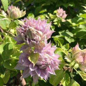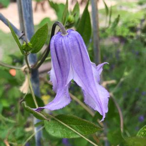 今日のお花クレマチス🌸 もう1枚6月のpicより📷✨ OFGオリジナル・クレマチス・ウォーカーズブルース💜 ねじれと軽やかな葉🌿も魅力的😌✨ あまり日当たらない場所に植えてしまい💦ぽつりぽつりとしか咲いてくれませんが😥