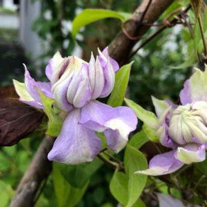クレマチス・ベルオブウォーキング💜 春と比べるかなり小さい🌸ですが、返り咲いてくれそうです😊🎶