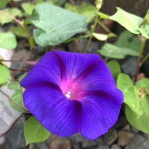 こぼれ種の朝顔💜 種まきした子よりも砂利にこぼれた子のほうが早く咲きました😅