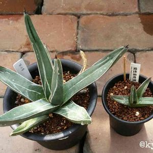 agave 雪シリーズ✨✨✨ 手前…笹の雪 左から…暁の雪、姫笹の雪、笹の雪黄覆輪 黄覆輪はいきなり外に出したから葉焼けして汚くなってます😭