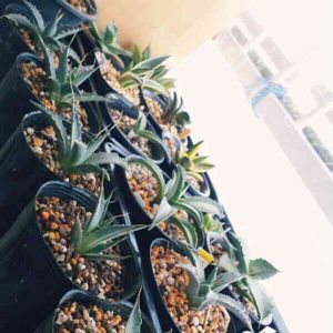 アガベンズ♥ 手前の一列はエボリスピナ✨ 纏めて植えてあったものを鉢上げしました。 陽炎出ないかなぁ~✨🐸