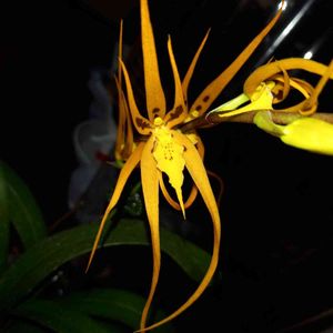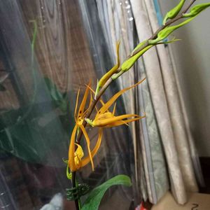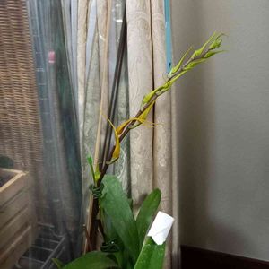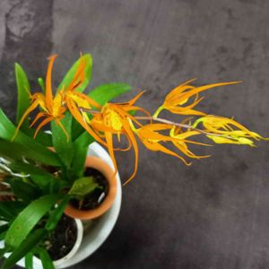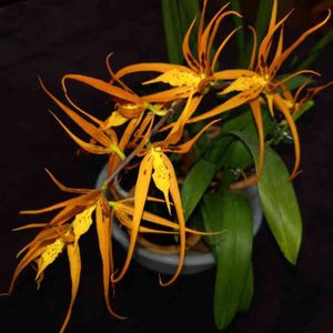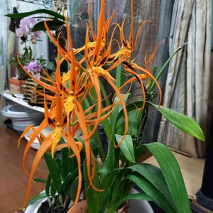 ブラッシア オレンジデライト スターベックオレンジさん。 家庭菜園の投稿を見ていたらどーしてもスナップエンドウが食べたくなりまして我が町のJAお買い物しにいった。毒々しい蜘蛛のような蘭を見っけたよ。お求め易さもさすがJA👀‼️うれしいので連れてきた。