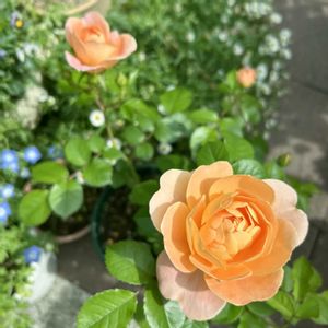 昨年、近くの京成デパートのイベントで出会い、一目惚れした🌹ジューシーテラッツァ✨🧡 とっても良い香り!ビタミンカラーなので、大きめ素焼鉢に入れてみました❣️ 小さな苗から元気に育ちましたよ🙆🏻♀️ 今日は家の中で🧡🎶