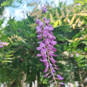 今朝ふと庭を見たら… なんとこの時期に藤の花が咲いているではないですかw(゚o゚)w この他にも後10個位蕾が…… 5月の終わり頃だったか6月の初めころに、樹木をコンパクトにしようと思い一度剪定したせいなのか、狂い咲きしてます😯 翌年の開花時期に影響が出るのか不安ですが……