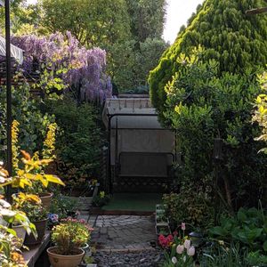 ✨ エントランス改造計画その① ✨ 先ほどの②と前後しますが… その①、藤エリアです 日本の藤を3本植えてあります 昔々、我が家を建て直す前の庭には、縦長に二畳ほどの藤棚がありました 私は子どもの頃からこの藤棚が好きだったので、建て直す時に藤棚は残して欲しいと父に頼んだのですが老朽化との理由で却下… なので、父が亡くなり庭いじりを始める時に、先ず頭に浮かんだのが藤棚を作る事、藤棚は無理でも藤は植えたいなーと… そして、挿し木から育て始めて2年ほど… ある程度育って来たので、門扉近くに定植しました 本来は藤棚なんだろうけど(ご近所さんからも指摘されましたが…)狭いスペースなので、とりあえず絡まってくれるようフェンスを屏風のように埋め込みました 埋め込んで1ヶ月ほど経ちますが、だんだん絡まってきてるので、次の開花が楽しみです 反対側の門扉近くにはアメリカフジをプランターで育ててます 日本の藤と違って、あまりツルは伸びず花姿は垂れ下がらないそうなので、こちらも次の開花が楽しみです