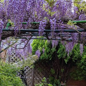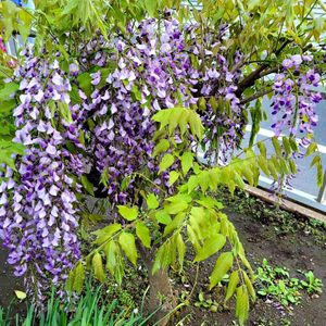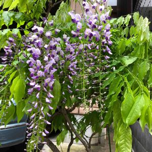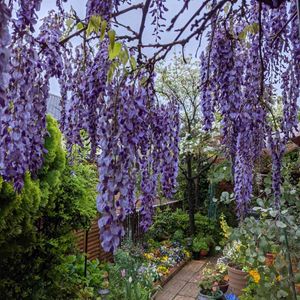 ご近所で、もう藤が咲き始めました。 木🌳は小さいのに花房が、長くて立派です😍 🏷愛しの紫