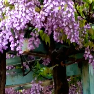 藤が咲きました♪ 今日は房の下まで開花して 散り始めている花も。 年に一度のよき日 麗らかなり~