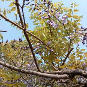 春の日差しはまぶしくて きらきらと うきうきと わが家のシンボルツリー、藤の蕾がほころんできました 今年もゴールデンウィークの頃かな 楽しみなのね、とても #藤花見 #藤の香り #藤のお宅