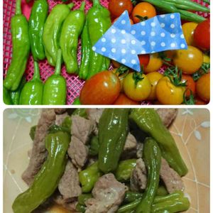 『早生ししとう』 豚肩肉と炒めました✌️ ニンニクを多くしてあります‼️
