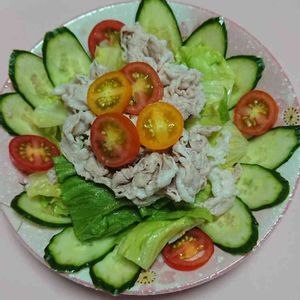 『ミニトマト』 【豚の冷しゃぶサラダ】 蒸し暑いので冷たい サラダは美味しいね‼️ どうぞ召し上がれ🍴