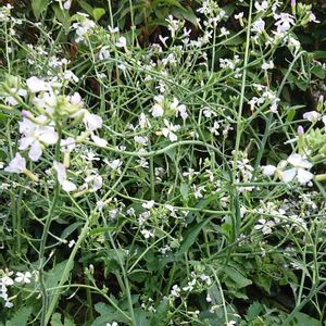 これは何の花でしょうか⁉️ 正解は 『ミニ大根』です‼️ 花芽が出て摘んでいたのですが ぐんぐん花が咲いてしまった😨 大根が成長しなくなったので 放置していたらこんな感じになりました😱💦💦 可愛そうですが明日にでも全部 引き抜きます(>_<) 暑さには勝てませんでした‼️ 私も暑さは嫌いです‼️ では 今日もお疲れ様でした✌️ 🌜💤おやすみなさい🌜💤