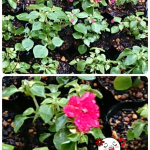 『インパチエンス』 アフリカホウセンカ 種から育てたので可愛さが 違います(^-^)v まだ定植前ですが花が咲き始めて来ました\(^-^)/ 私の夏には欠かせない花‼️ 沢山有るのでどうしよう⁉️ 考え中✌️ おはようございます‼️ 今日も雨☔ この時期は仕方ないですね❗ だるさに負けずに 頑張ろうね‼️