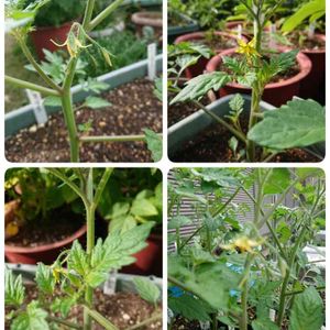 『ミニトマト』 【育て方中級〜上級編】① 皆さんのミニトマトはもう 収穫は出来ましたか⁉️ 自分で育てた実は特別ですよね‼️ 出来たら沢山の収穫を望むことでしょう🍅🍅🍅 今からでも出来ることの一部を紹介しますね👍 トマトは出来るだけ水分を少なく育てたほうが甘いトマトになるのですが少なすぎたりすると 根っこが土の上から出たり茎の途中に出たりして空気中の水分を取り込もうとします❗ そんなときや実ができてきたときは少し多めに水割りしましょう‼️ 上の写真の吹き出し✌️これは見えなくなるまで土を足しておきましょう🍅 途中に出たときはそのままで大丈夫です‼️ トマトのコンパニオンプランツ としてバジルを植え込んでいます‼️ バジルの臭いで害虫が付きにくくなります‼️新芽の柔らかい時はアブラムシ等が食べる時もあります‼️ 一緒に植えることで互いの根っこに良い影響があります‼️ バジル以外にも パセリやニラやレモンバーム チヤイブやマリーゴールド等でも良いですよ‼️ トマトとバジルは料理の相性が良いので私はバジルです‼️ よかったらお試しくださいね👍