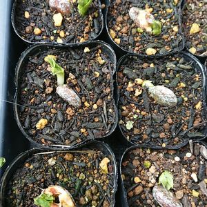 『空豆』 やっと発芽してきました‼️ 5cm位になったら定植だ~✌️ でも 何処に植えよう⁉️ 高さもあるし 支柱もいるし 大変だ(@_@)
