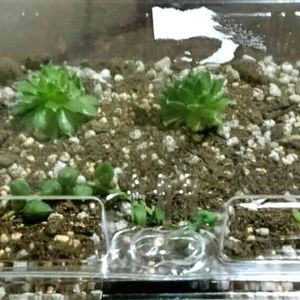 プチ(トマト)温室! うっかり落として家出したセンペル子がいつまでたっても根付かないのでお試しで。 以前いただいたグリーンネックレスも、2㎜位の根が出たあと動きがないため一緒に( ̄▽ ̄;)